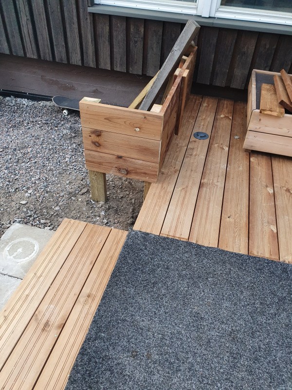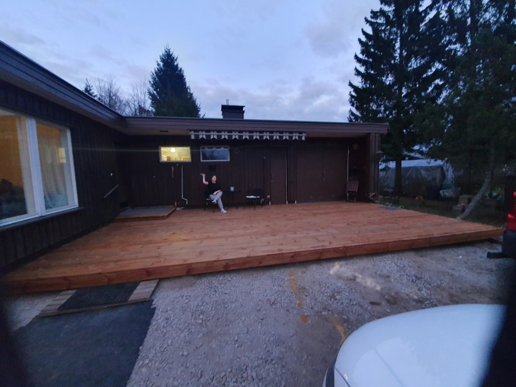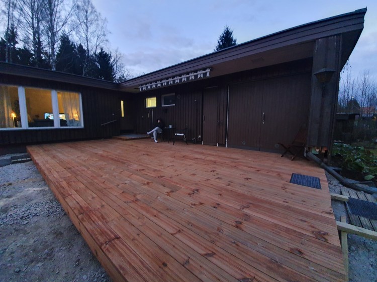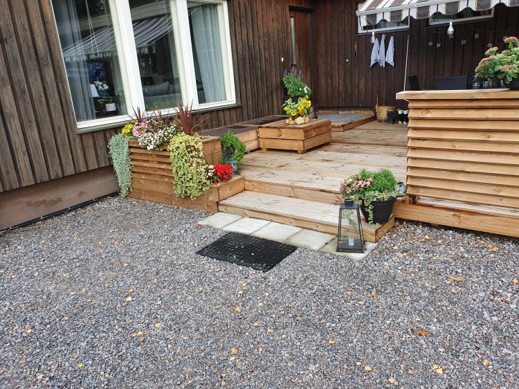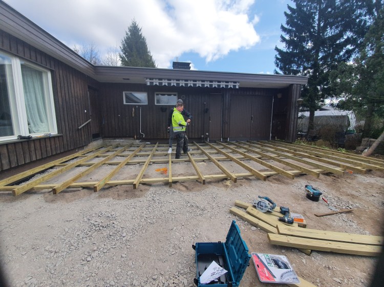 - Kaivettiin omakotitalon edustalle salaojat ja aloitettiin terassin rakentaminen
