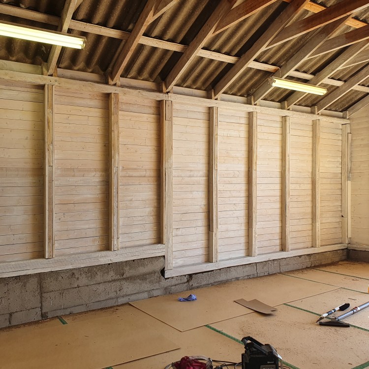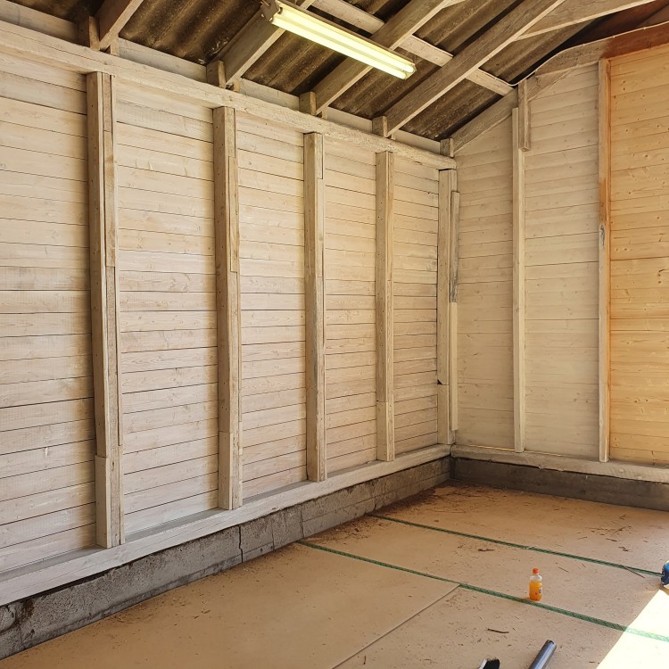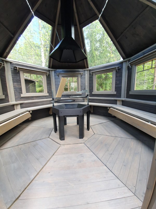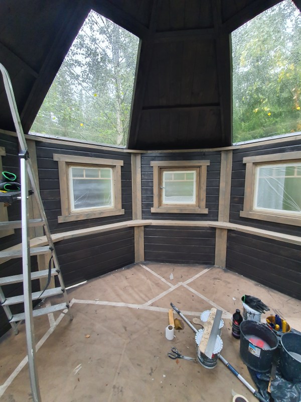 Grillikota maalattiin sisältä tikkurilan akvacolorilla. Seinät ruiskumaalattiin ja lattia mallattiin perinteisesti pensselillä.