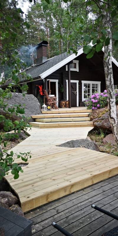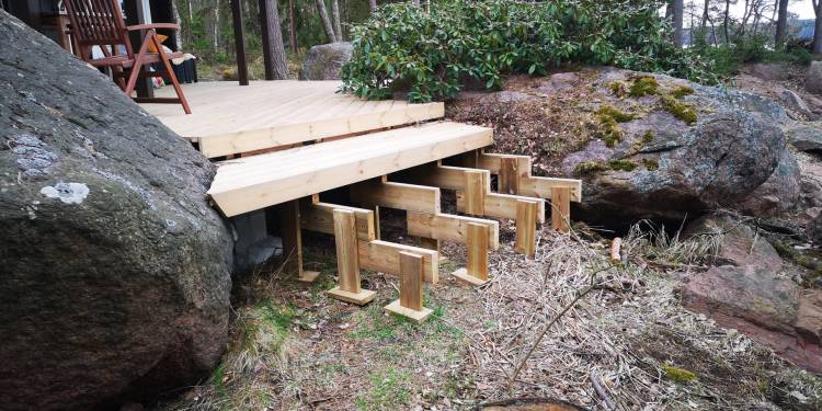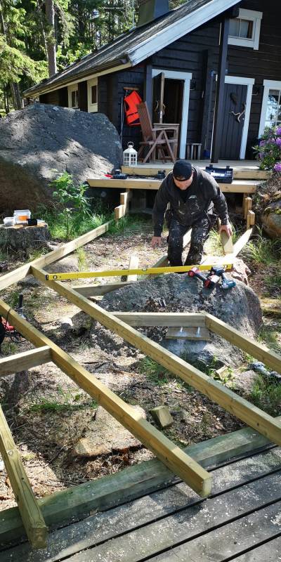 Terassi rakennettiin kivien muotoja myötäillen kesällä 2023